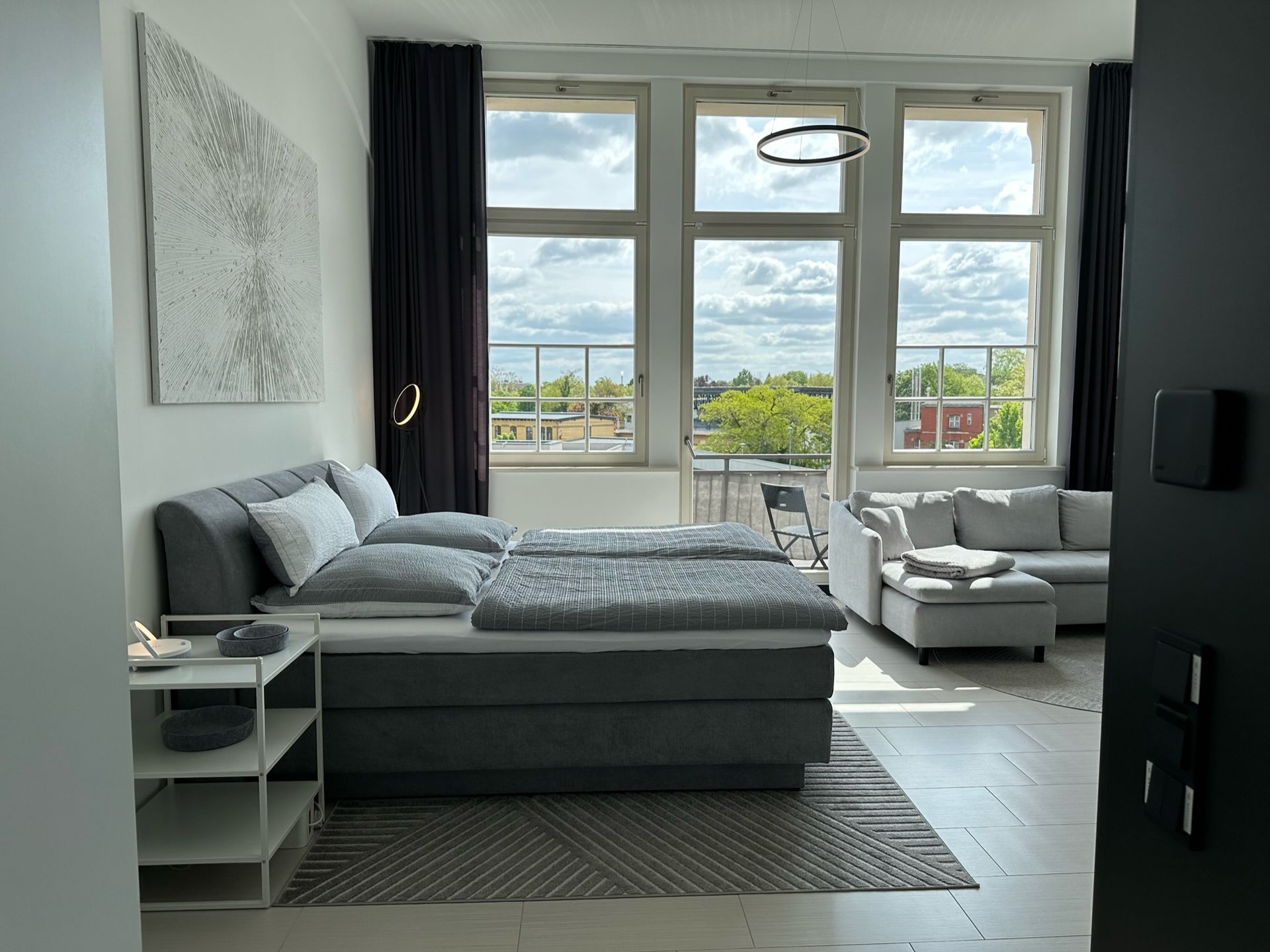Das Studio-Loft-Apartment wurde 2023 frisch renoviert und hochwertig eingerichtet - mit allem Komfort für eine angenehme Zeit in Leipzig. Hohe 3.60 m-Decken und große, lichtdurchflutete Fenster harmonieren mit einer modernen Ausstattung in der denkmalgeschützten, alten Buchdruckerei von 1898 . Das Nichtraucher-Loft befindet sich im 2. Obergeschoss und ist bequem mit dem Fahrstuhl zu erreichen. Eine vollflächige Fußbodenheizung erstreckt sich über insgesamt 42 qm . Das große Boxspring-Bett (1,80 x 2 m) und das gemütliche Schlafsofa sind ideal zum Ausruhen nach einem langen Stadtbummel.